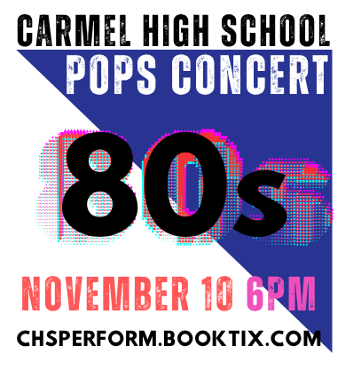 Join us Mon., Nov. 10 at 6 p.m. in the Carmel High School Gym to see musicians from the Carmel High School band, orchestra and chorus, as well as George Fischer Middle School's 8th grade band and orchestra ensembles perform your favorites from the era of big hair, MTV and synthesizers.